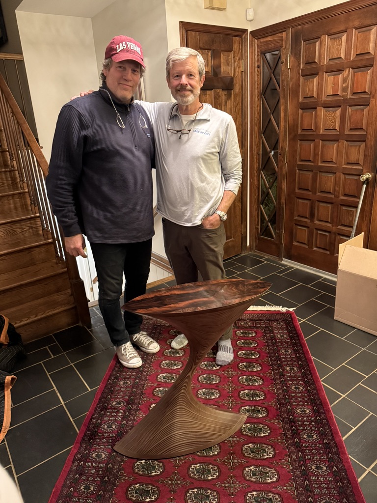 The gorgeous table is from my friend David Hymes. I'm a woodworker, David is true artist whose medium is wood. Check out his work at https://www.david-hymes.com